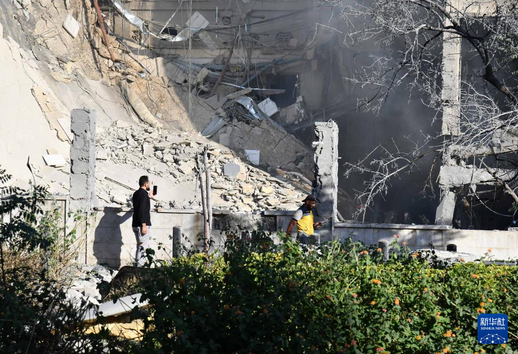 这是7月16日在叙利亚首都大马士革拍摄的在以色列空袭中受损的叙“总参谋部”大楼(资料照片)。新华社发(阿马尔·萨法尔贾拉尼摄)
