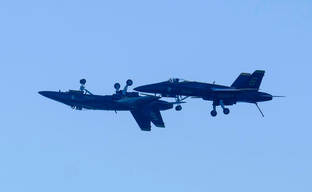 2017年9月30日,美国海军“蓝天使”飞行表演队的F-18战机参加在美国加利福尼亚州奥兰治县举行的亨廷顿海滩飞行表演。新华社发(赵汉荣摄)