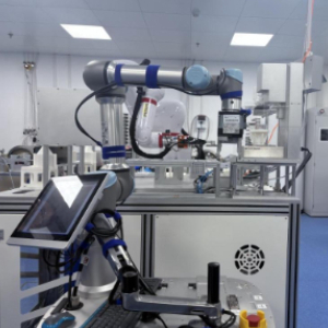 在实验桌前,一名“智能科学家”正抬起结实的机械臂抓取试管,依次走过液体进样台、磁力搅拌台、烘干工作台,进行样品称重、搅拌、离心、烘干……