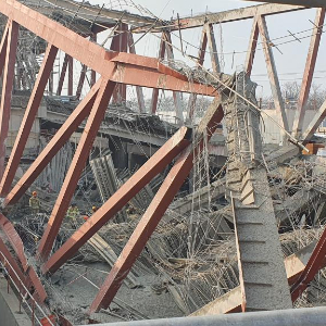 这是12月11日拍摄的韩国光州市发生坍塌事故的施工现场。新华社/纽西斯通讯社
