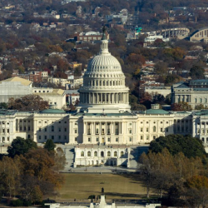 这是11月17日从美国首都华盛顿的华盛顿纪念碑上拍摄的美国国会大厦。新华社记者胡友松摄