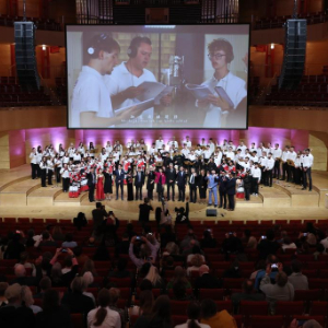 这是10月4日在德国埃森市拍摄的中德青少年交流音乐会现场。新华社记者杜哲宇摄