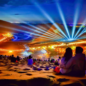 甘肃省民航机场集团“支支串飞”模式推出后,游客在鸣沙山月牙泉景区参加万人演唱会。(谢伟 摄)