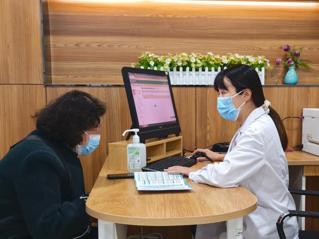 西安交通大学第二附属医院健康管理部医师杨楠为患者解读体检项目。新华社发