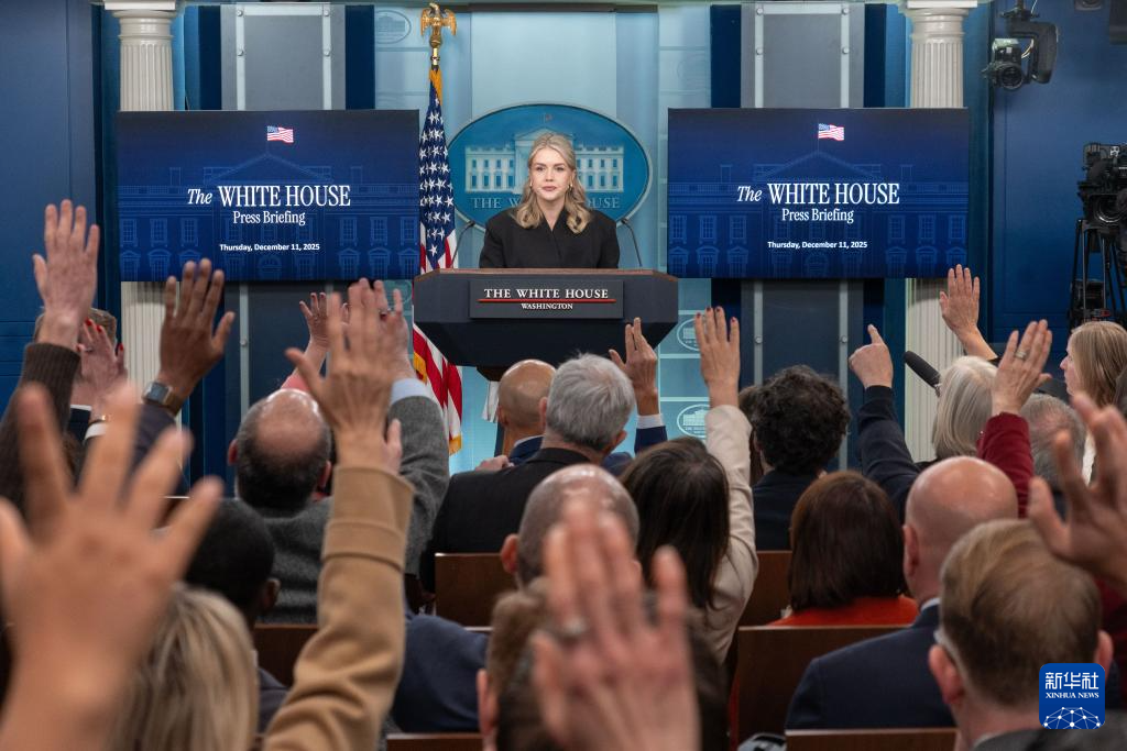 12月11日,在美国首都华盛顿白宫,白宫新闻秘书卡罗琳·莱维特出席记者会。 新华社发(李源清摄)