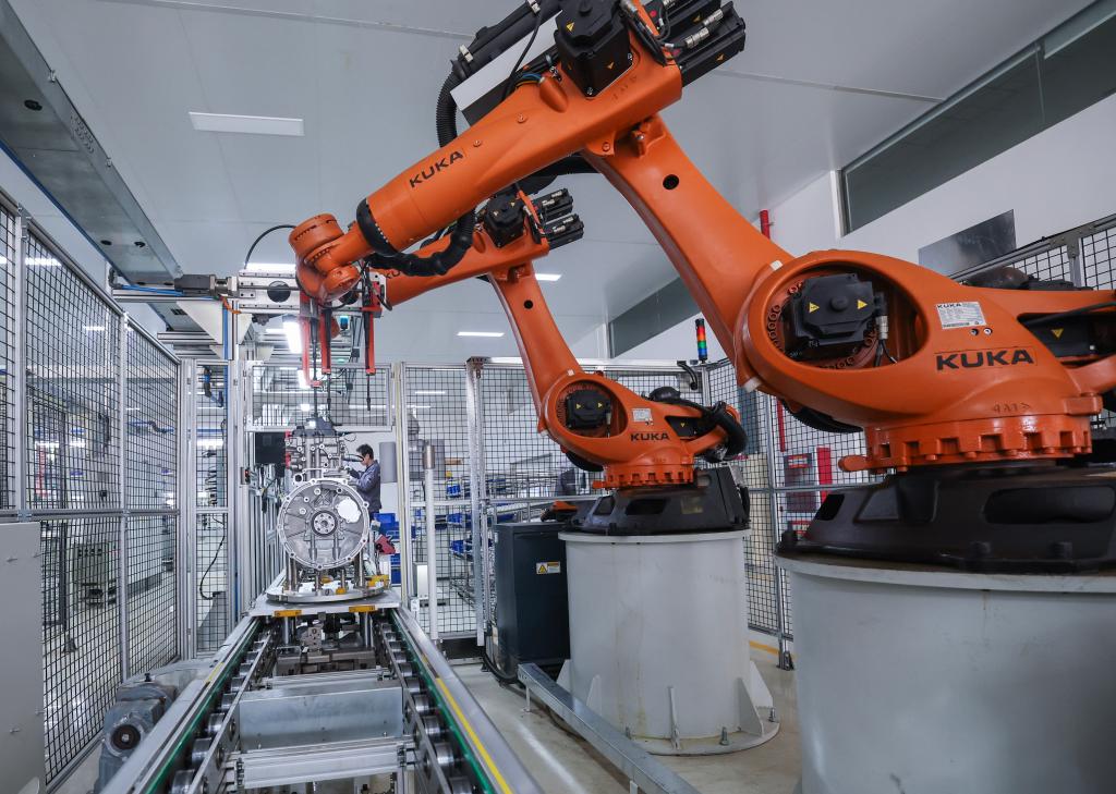 11月27日,在位于金华市金东区一家公司的生产车间内,流水线上正在加工新能源汽车的智能增程器。新华社记者 徐昱 摄