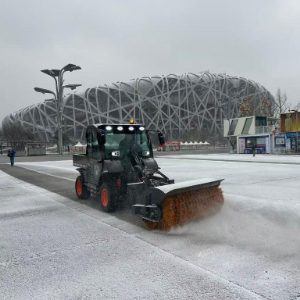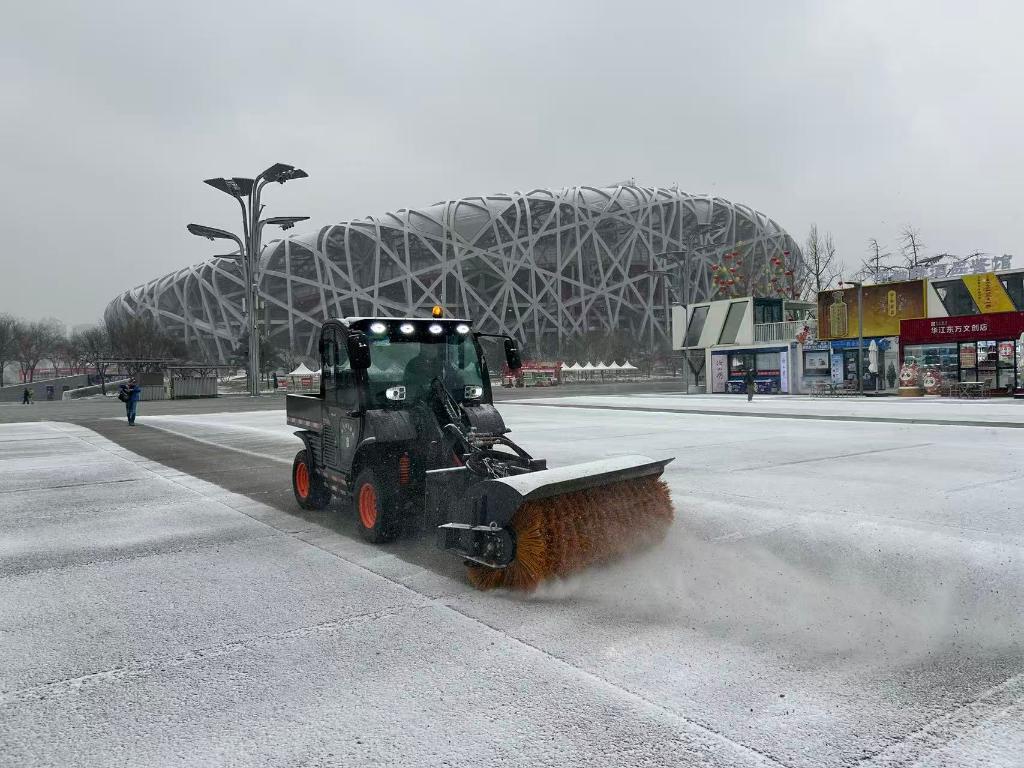 图为北京环卫集团城市机扫公司在奥林匹克公园中心区开展除雪作业。(北京环卫集团供图)