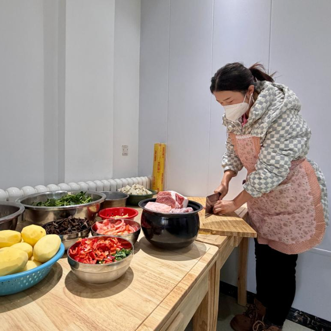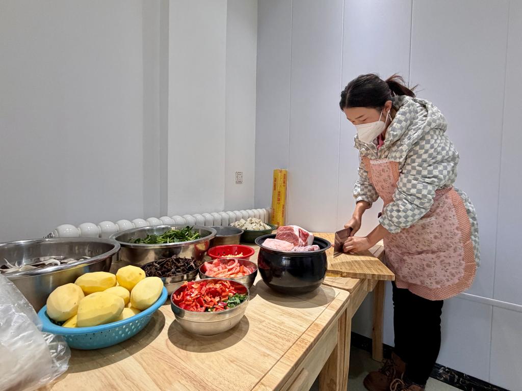 青海省西宁市城中区元树村老年之家,工作人员在备餐。新华社记者张子琪 摄