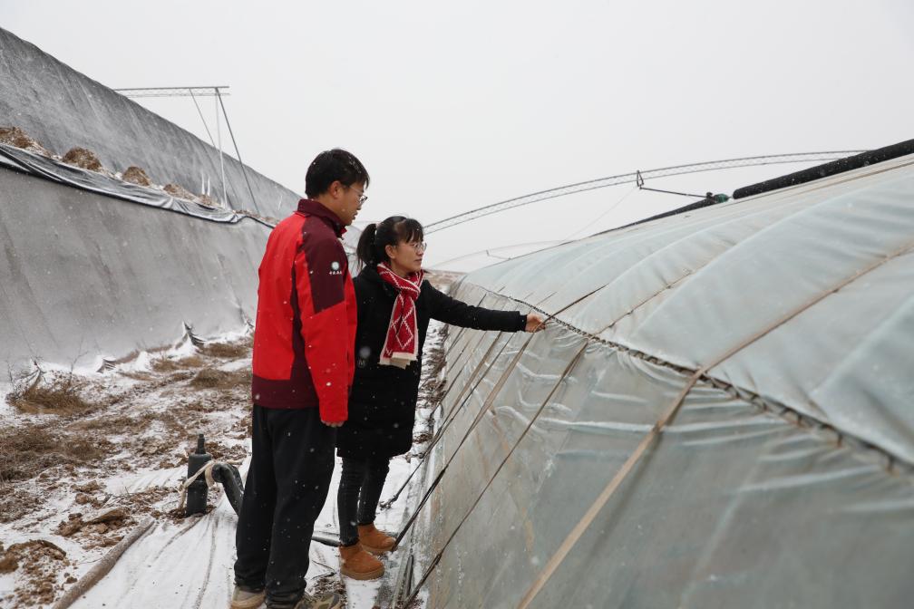 在邢台市南和区,当地农技人员指导种植户开展棚室保温加固工作。新华社发(耿昭 摄)