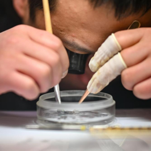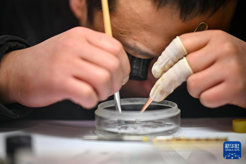 2025年12月9日,修表师傅王晴川在清理手表零件。