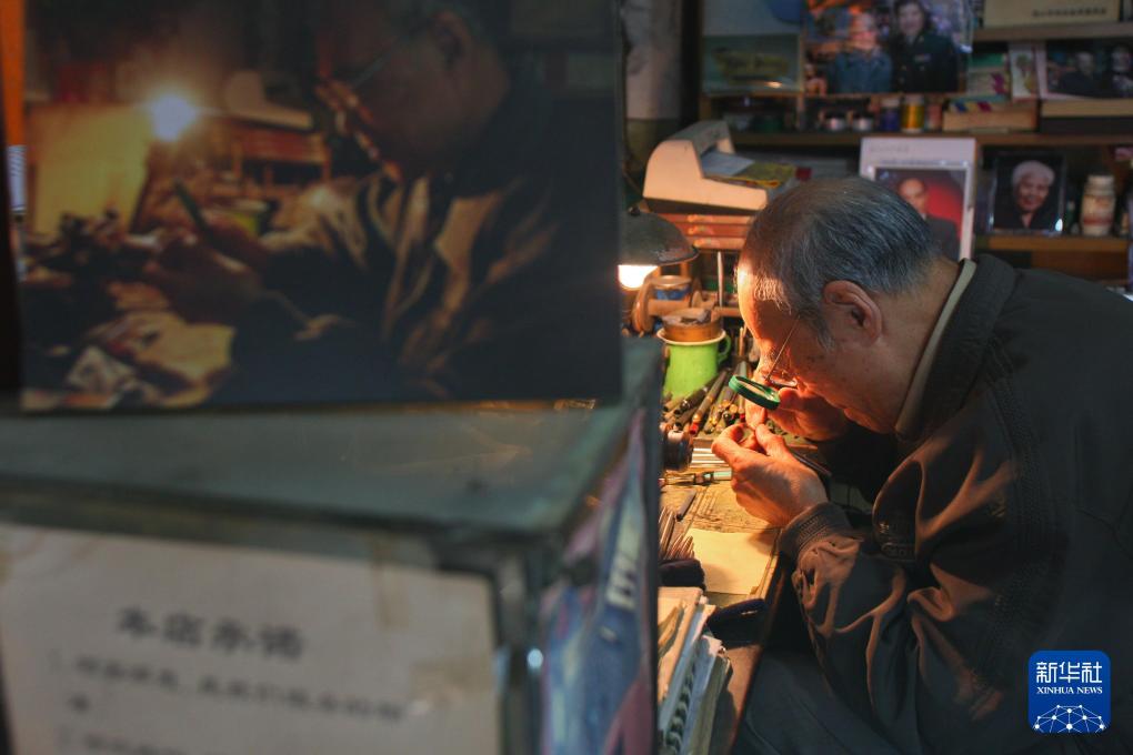 2013年5月3日,“钢笔爷爷”张广义在北京东四南大街的“广义修笔店”内维修钢笔。新华社发