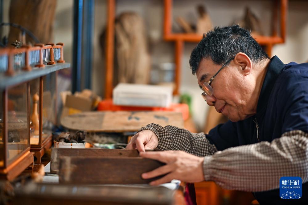 2025年12月9日,木工师傅李川在修理木制小家具。