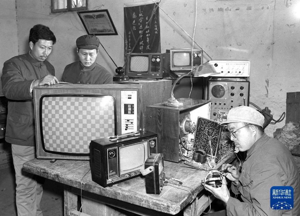1979年,河南省许昌市五交化公司维修门市部职工在维修电视机。新华社发(蔡玉琦 摄)