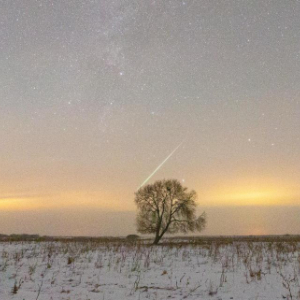 12月14日凌晨在黑龙江省伊春市伊美区拍摄的双子座流星雨。新华社发(李佳星摄)