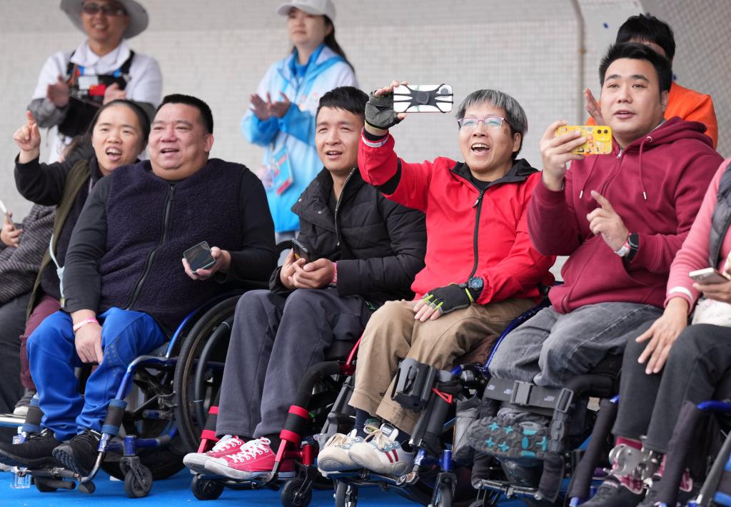 12月14日,无障碍座席上的观众们在观看田径比赛。新华社记者 马金瑞 摄