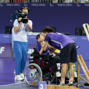 2024年的巴黎残奥会上,李荣杰向何宛淇送上情深一吻。
