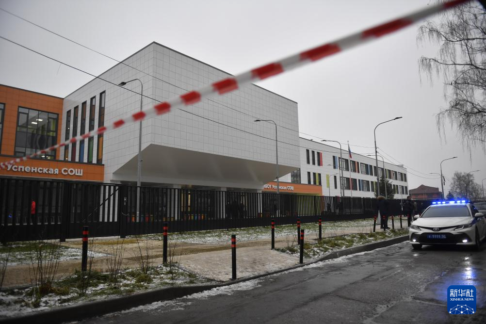 这是12月16日在俄罗斯莫斯科州奥金佐沃市第二戈尔基村拍摄的事发中学。新华社发(亚历山大摄)