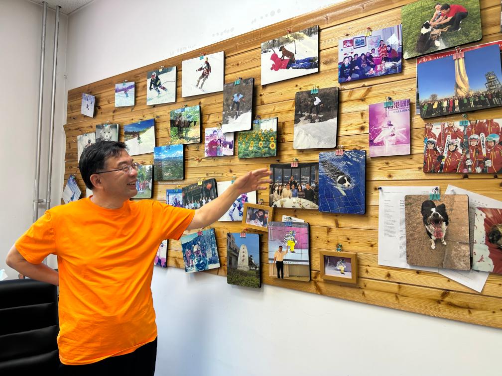 研究太阳能热发电的科学家王志峰对冰雪运动有十足的热情。他办公室有一面照片墙,上面全是他和家人在雪道上俯冲、转弯的照片。