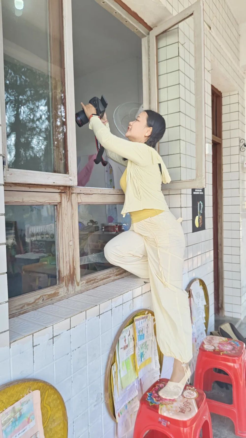 做教师节的选题时,我透过窗户给小朋友和老师拍照,记录她们一起做游戏。看着她们的笑脸,盯着相机屏幕上的画面,我不自觉地笑了,同事刚好抓到这一幕,真好看。@雪糕娃娃