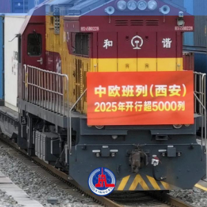 11月17日上午,装载着汽车配件、光伏组件、跨境电商货物的X9043次中欧班列(西安)驶出西安国际港站,驶向阿塞拜疆首都巴库。根据国铁集团提供的数据显示,2025年1至10月,中欧班列(西安)累计开行5063列,同比增长16.3%,首次实现年度前10个月开行量突破5000列大关,创历年同期最高纪录。开行量、货运量、重箱率等核心指标持续稳居全国前列。新华社记者 邵瑞 摄