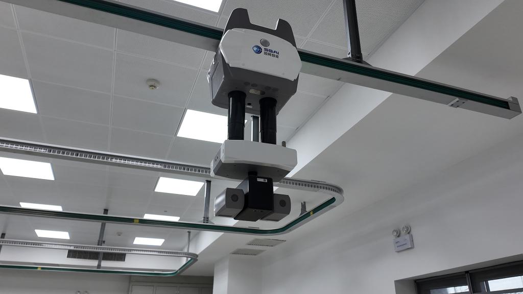 这是卡麦换流站控制保护设备室内配备的轨道巡检机器人。新华社记者 潘一景 摄
