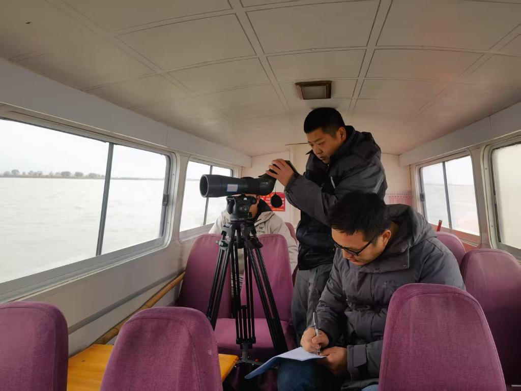 这是工作人员在南洞庭湖进行候鸟观测。新华社发