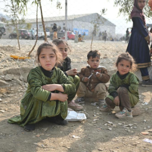 这是12月16日在阿富汗托尔哈姆的临时营地拍摄的返乡儿童。新华社记者 张艺缤 摄