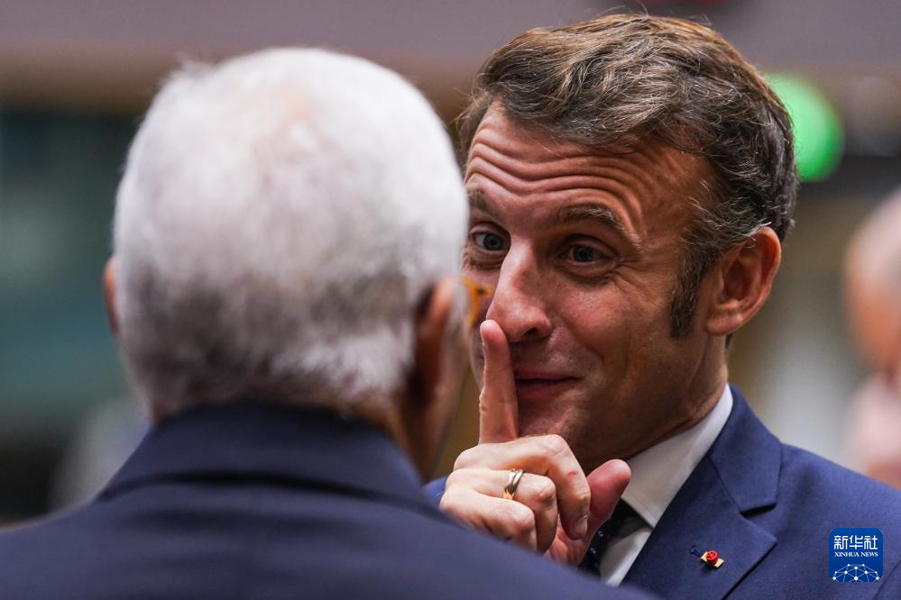 12月18日,在比利时布鲁塞尔,法国总统马克龙(右)与欧洲理事会主席科斯塔在欧盟峰会前交谈。新华社记者 彭子洋 摄