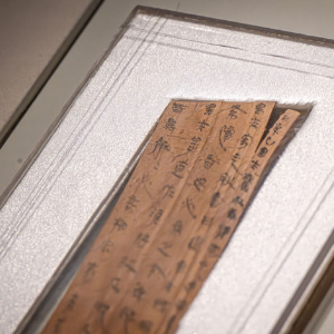 湖北省博物馆展出的家书木牍。新华社记者肖艺九 摄