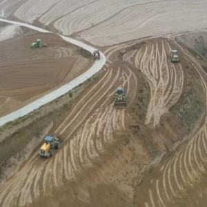 寒冬时节,在甘肃省定西市安定区新集乡丰旺村,机器轰鸣,车辆穿梭,万亩坡耕地水土流失综合治理工程在这里作业正酣。