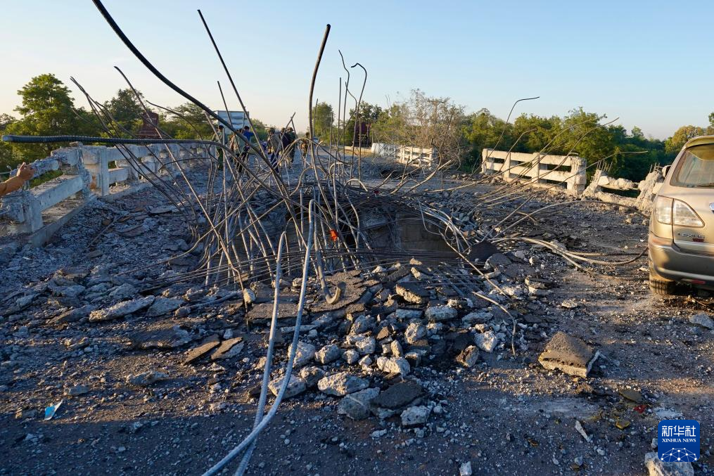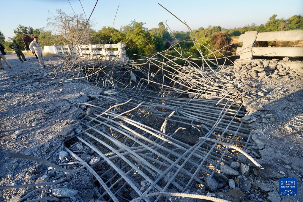 这是12月20日在柬埔寨奥多棉吉省与暹粒省交界处拍摄的被轰炸的桥梁。新华社/柬新社