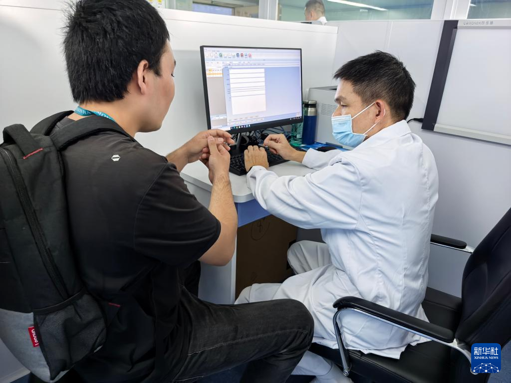 12月20日,执行“和谐使命-2025”任务的中国海军“丝路方舟”号医院船抵达巴巴多斯布里奇敦港。这是医院船挂号处分诊现场。新华社发(崔晓洋摄)