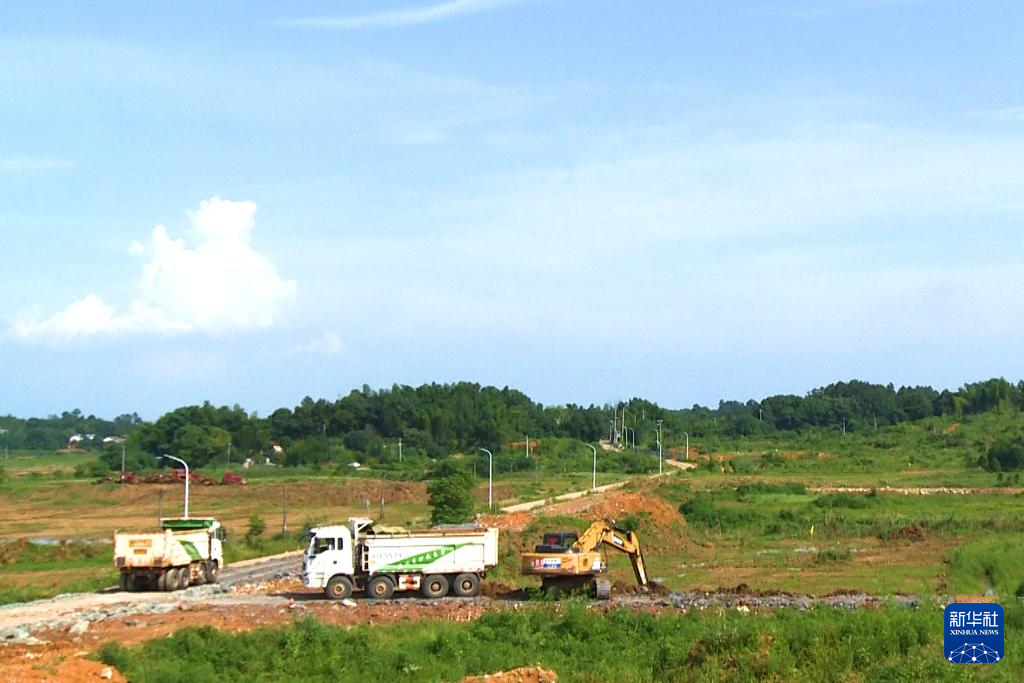 2022年6月15日,长沙机场改扩建项目耕作层剥离后进行装车运输。新华社发(邹礼卿 摄)