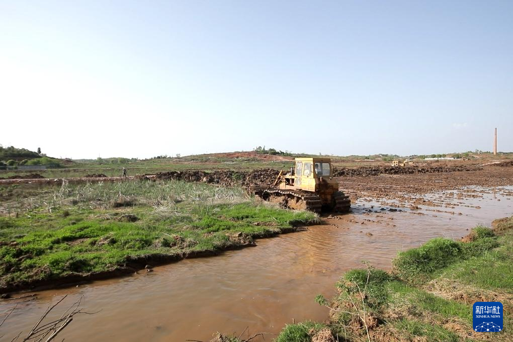 2022年4月7日,长沙机场改扩建项目被占耕地在进行耕作层剥离作业。新华社发(邹礼卿 摄)