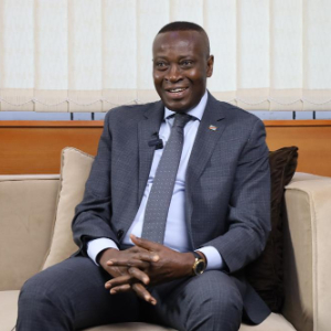 12月18日,刚果(金)副总理兼国民经济部长达尼埃尔·穆科科·桑巴在首都金沙萨接受新华社记者专访。新华社发(伯努瓦·年巴摄)