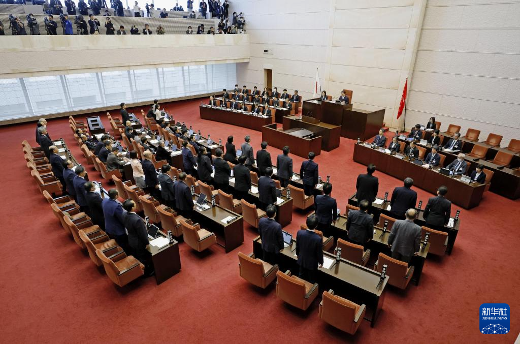 这是12月22日在日本新潟县拍摄的县议会现场。新华社/共同社