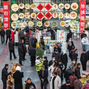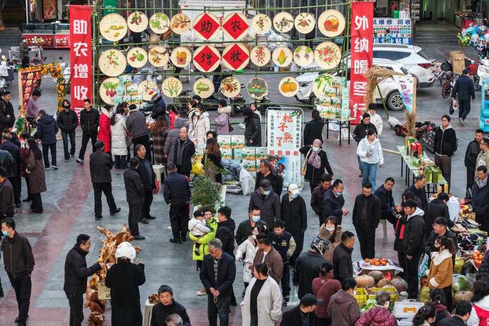 12月13日,居民在陇南市武都区“冬至大集”上选购特色农产品(无人机照片)。新华社记者 郎兵兵 摄
