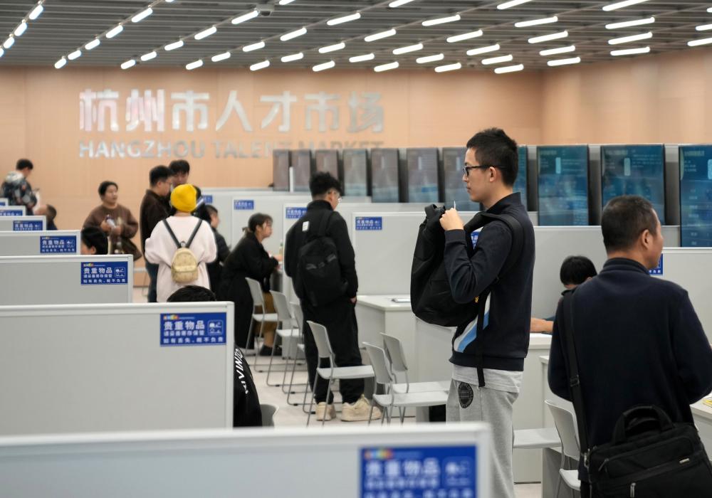 11月12日,求职者在招聘会上寻找心仪的工作岗位。新华社记者 韩传号 摄