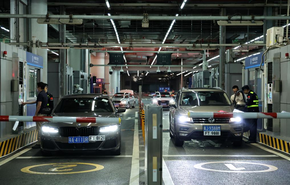 12月23日,来自广东的私家车通过港珠澳大桥香港口岸。新华社记者 陈铎摄