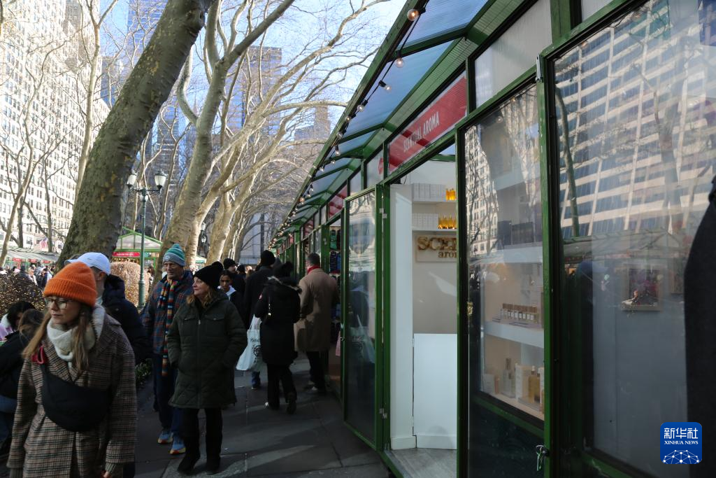 12月22日,人们行走在美国纽约曼哈顿中城布莱恩特公园的节日季露天市场。新华社记者 刘亚南 摄