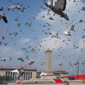 2025年9月3日,纪念中国人民抗日战争暨世界反法西斯战争胜利80周年大会在北京隆重举行。这是纪念大会现场放飞鸽子。新华社记者 牟宇 摄
