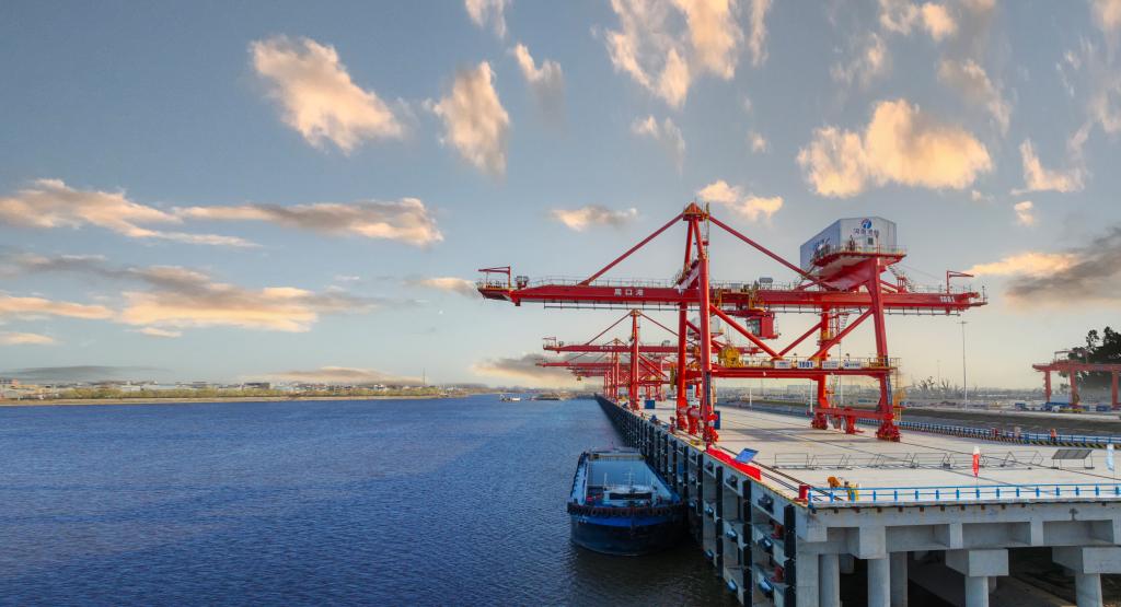 目前,周口港已集成海关通关、物流转运、货代船代、装卸查验等功能,开通24条国内集装箱航线,打通19条外贸接力航线,货物集散覆盖中西部主要地区及全球主要贸易区,构建了“内河+海运”的双向通道。今年1月至11月,周口港完成货物吞吐量4740.5万吨,集装箱吞吐量16万标箱,同比增长9.5%。