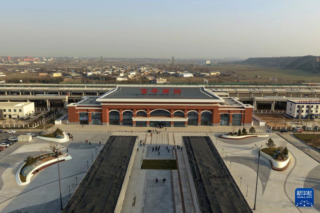 12月24日拍摄的西延高铁富平南站(无人机照片)。