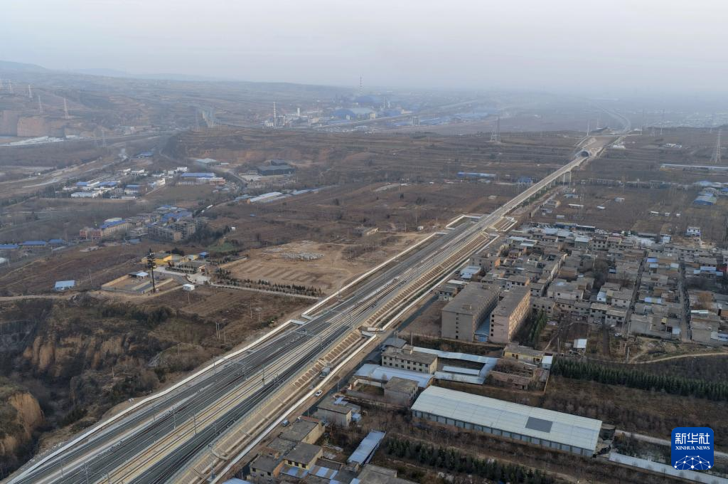 12月24日拍摄的西延高铁铜川段(无人机照片)。