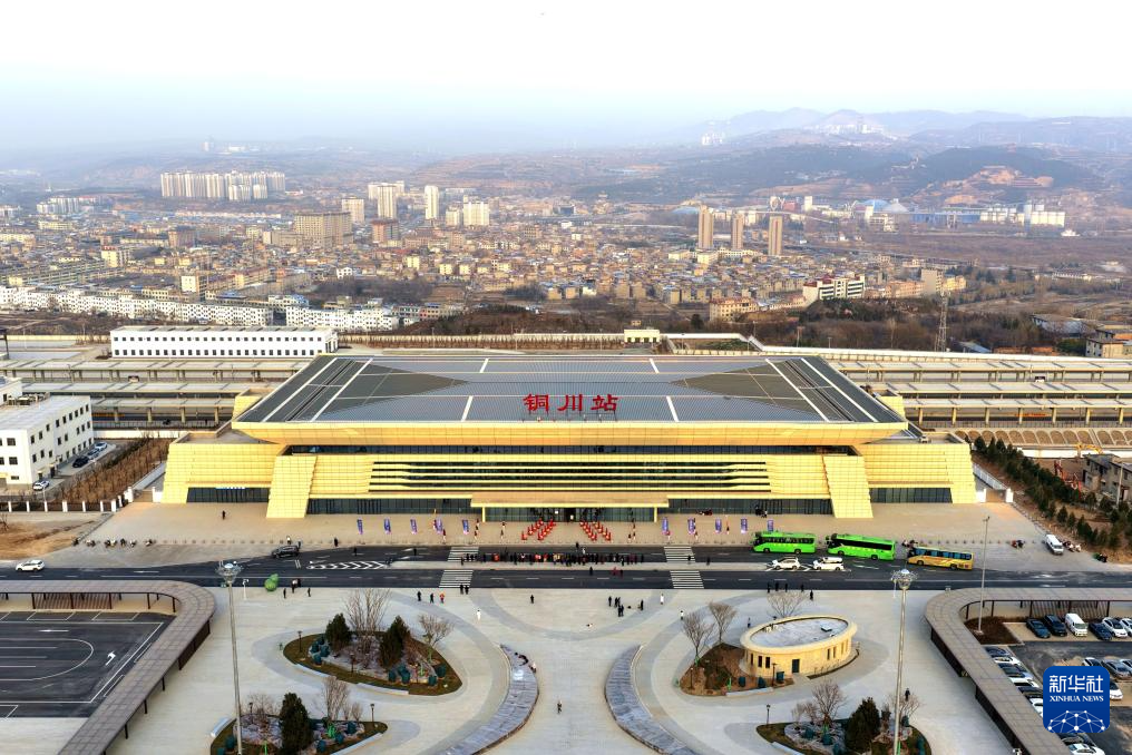 12月24日拍摄的西延高铁铜川站(无人机照片)。