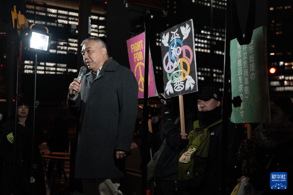 新华社东京12月24日电(记者梁晨 李林欣)日本民众23日晚在东京首相官邸前举行抗议集会,要求首相高市早苗撤回涉台错误言论,并批评首相官邸负责安保政策的官员有关“拥核”的言论。