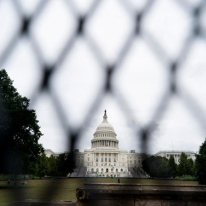 这是2021年9月17日在美国首都华盛顿透过隔离围栏拍摄的国会大厦。新华社记者刘杰摄