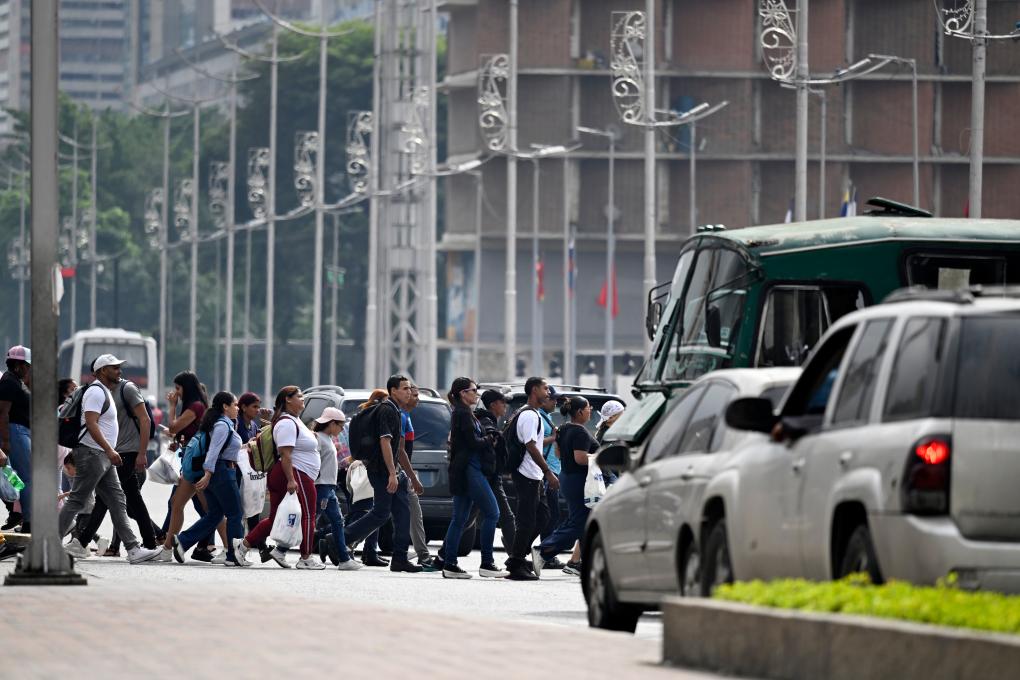 12月2日,在委内瑞拉首都加拉加斯,行人在早高峰时段穿过玻利瓦尔大街。新华社记者李木子摄