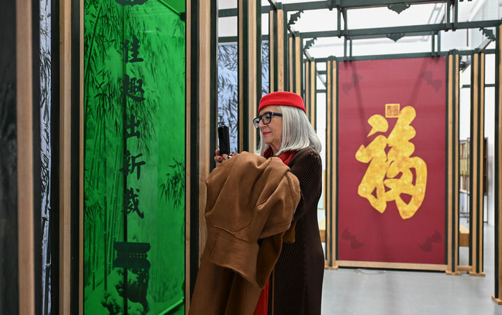 12月16日,在西班牙马德里中国文化中心,参观者在“安善萃锦——中式生活美学展”上参观。(程敏 摄)