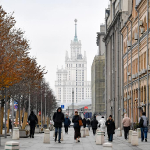 11月11日,行人走在俄罗斯首都莫斯科街头。新华社发(亚历山大摄)